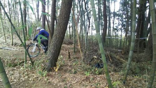 Mちゃんのお父さんがマウンテンバイクコースを作っているので是非遊びにきてほしいというので寒くなる前に急きょ偵察?に行ってきました。民家の裏に竹林があってそこを開拓している模様。家の前をスタートゴールにして一周200mくらいだろうか?こんもりと…